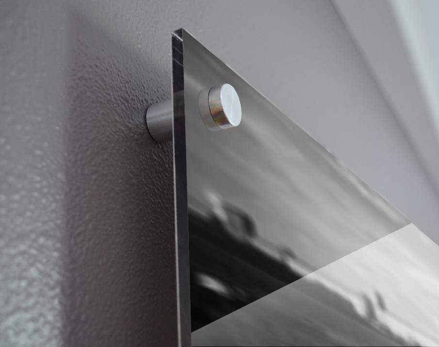 Printed to the edge - Ready to hang - provided with 4 premium polished aluminum stand off ( wall screws and mounting hardware provided )