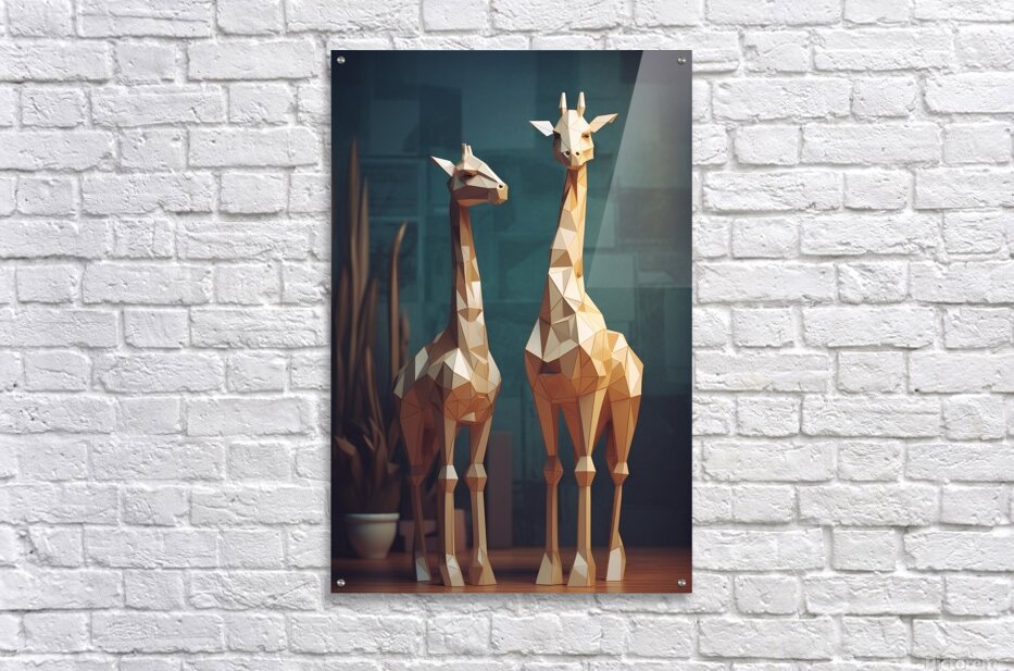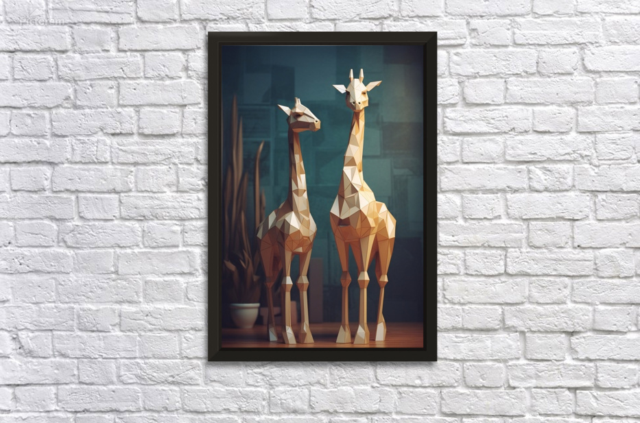 Giraffe Low Poly Art Wall Decor   HD Metal print with Floating Frame on Back