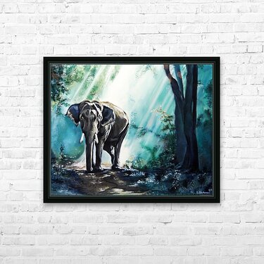 Get this artwork "Elephant in the Jungle" in a framed print.