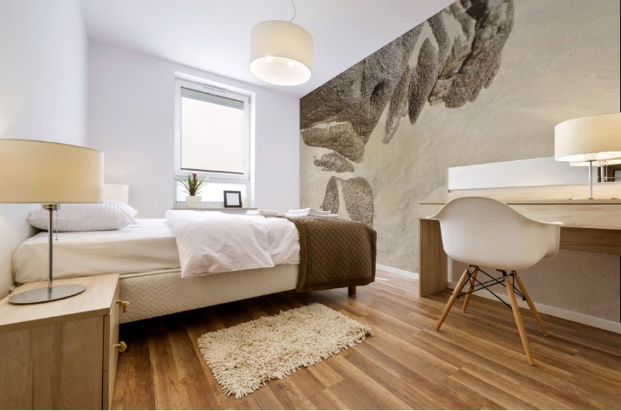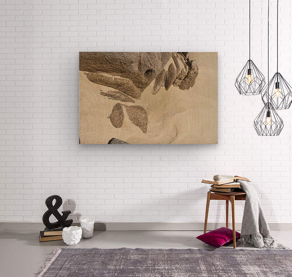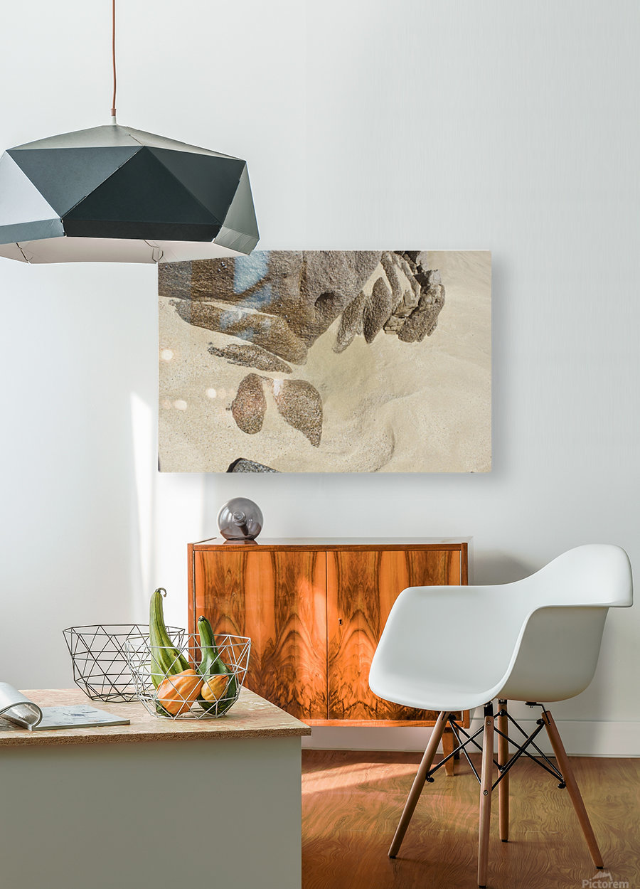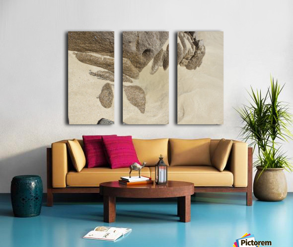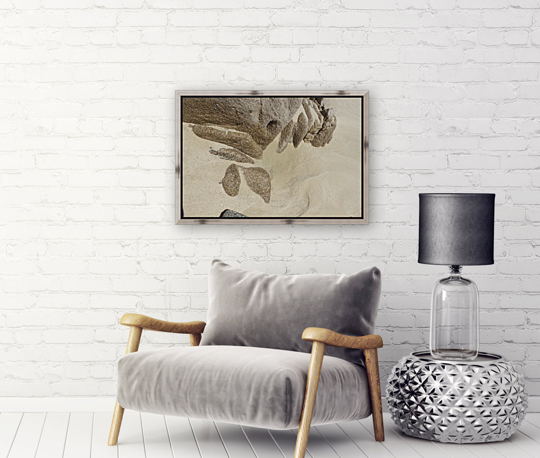 An abstract sandy look with rocks. Very soothing and zen for any space or wall. Looks great in a large size.