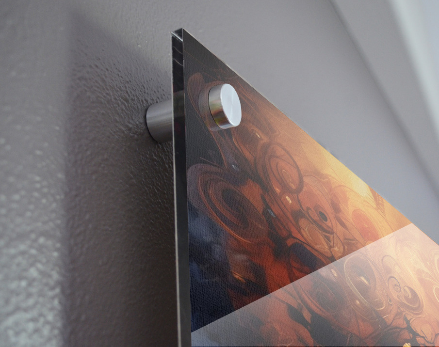 Printed to the edge - Ready to hang - provided with 4 premium polished aluminum stand off ( wall screws and mounting hardware provided )
