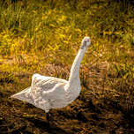 A beautiful Tundra Swan overwintering on the North Carolina coastline, looking at me with a whimsical expression as the sun was setting in a wetlands ...[+]