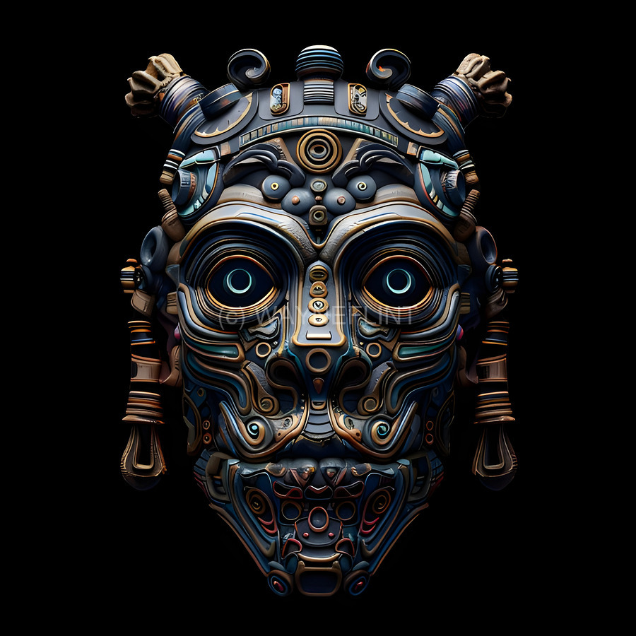 "Celestial Veil: The Alchemic Gaze" was born from the depths of my imagination, bridging the ancient and the futuristic in exquisite harmony. This piece, with its intricate patterns and textures, melds metallic and organic elements, inviting you to explore realms beyond the ordinary. Luminous eyes imbued with light peer into the unknown, while symmetrical designs adorned with circular motifs, flowing lines, and geometric shapes evoke a sense of mystery. This artwork serves not only as a depiction but as a gateway to a richly layered world where colors and shades blend seamlessly. Its creation was a journey into unexplored dimensions—a unique alchemical dance between the tangible and the ethereal. Enter this captivating vision and let it reveal its secrets to your soul.