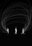 Against a deep black background three figures stand apart embodying the space between them. Each figure is isolated yet subtle lines extend between th...[+]