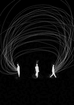 Against a deep black background three figures stand apart embodying the space between them. Each figure is isolated yet subtle lines extend between th...[+]