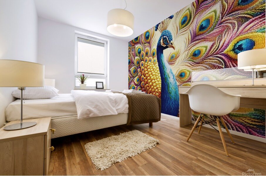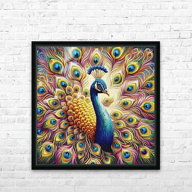 Royal Radiance” Description: The peacock stands tall and proud, its plumage a cascade of brilliant colors, each feather meticulously detailed to sho...[+]
