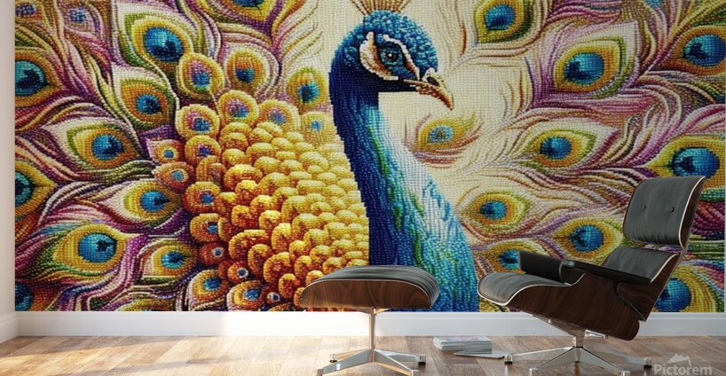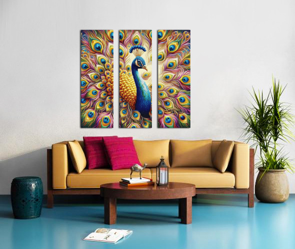 Royal Radiance” Description: The peacock stands tall and proud, its plumage a cascade of brilliant colors, each feather meticulously detailed to showcase its natural splendor.