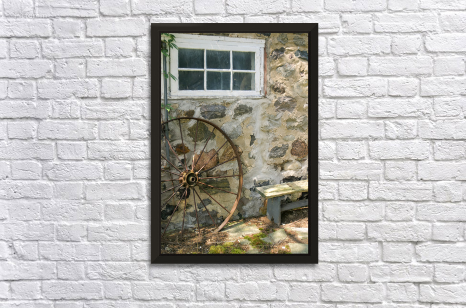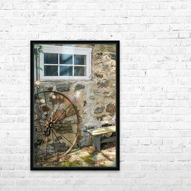 Rusty Wheel and Stone Wall Picture Frame Printing