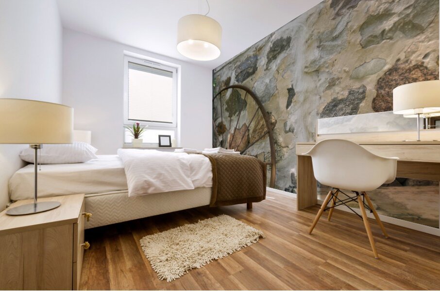 Get this artwork "Rusty Wheel and Stone Wall" in a framed print.