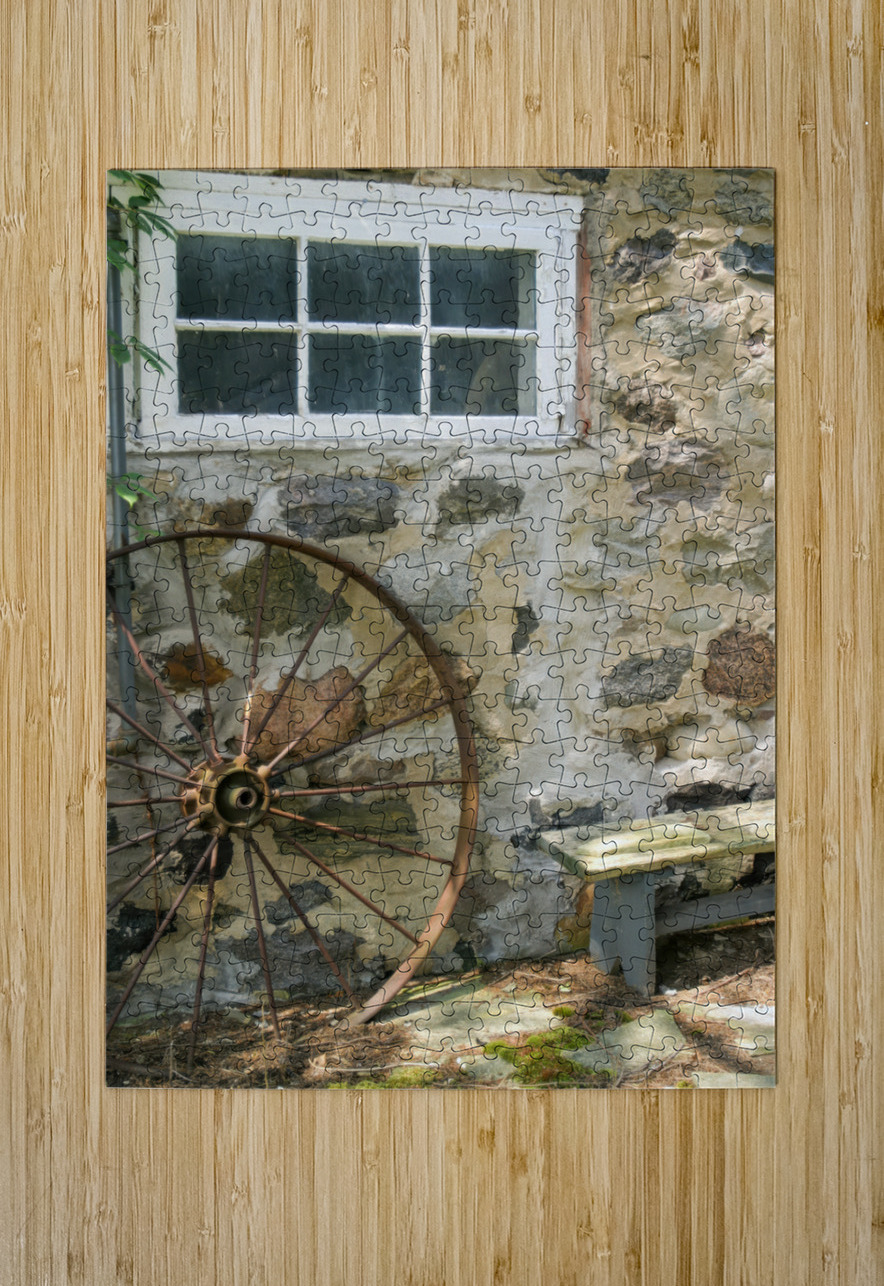 Rusty Wheel and Stone Wall Thea Menagh Puzzle printing