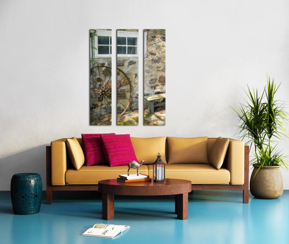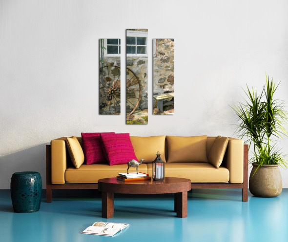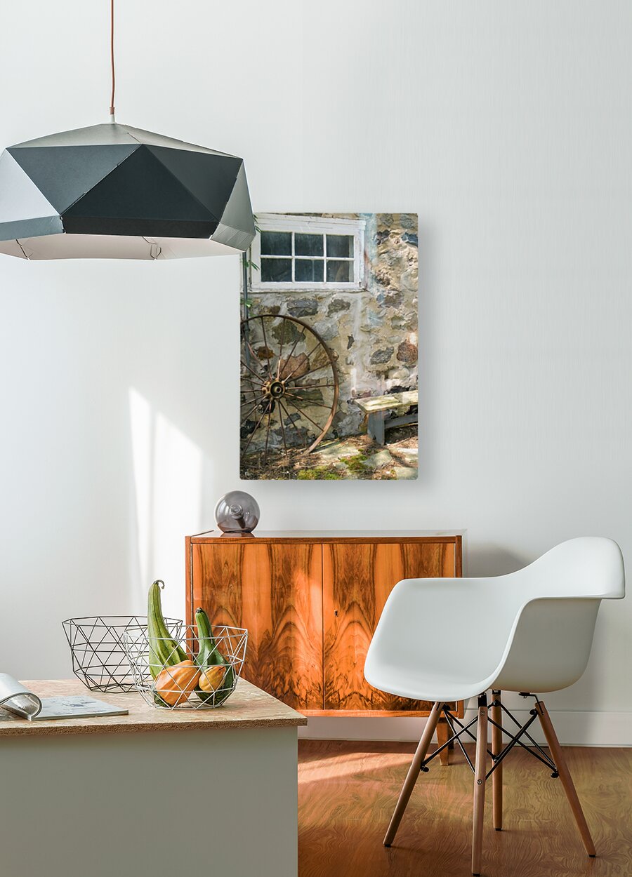 ABOUT THIS ARTWORK: RUSTY WHEEL AND STONE WALL