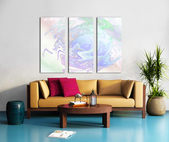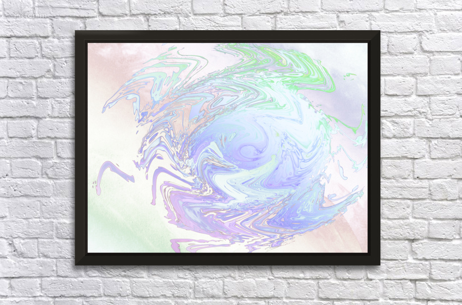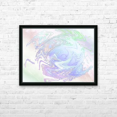 Originally a close up photo of a Daisy flower laterally digitally manipulated using various filters in Canva.com enabled this stunning piece of floral contemporary art to emerge. Features a swirling blend of pastel colors creates an abstract design, combining shades of green, purple, and blue. Flowing shapes and soft gradients give a dreamy, ethereal feel.