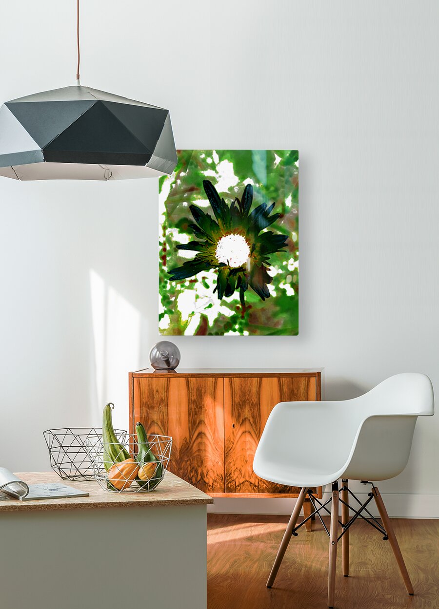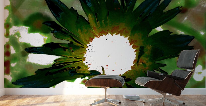 ABOUT THIS ARTWORK: ABSTRACT DARK GREEN DAISY FLOWER