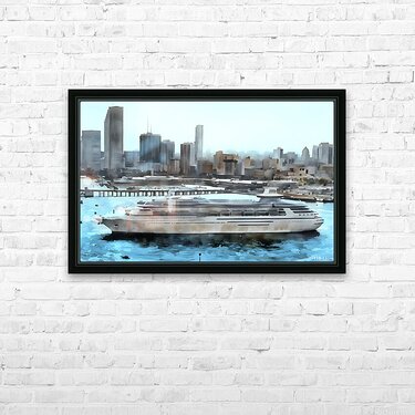 1980s miami cityscape art Picture Frame Printing