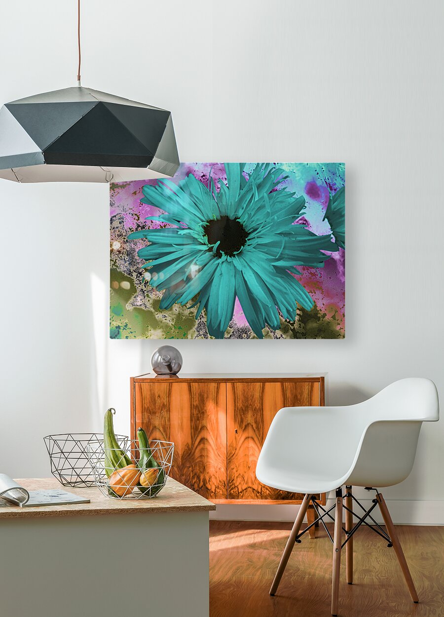 ABOUT THIS ARTWORK: ABSTRACT TEAL DAISY