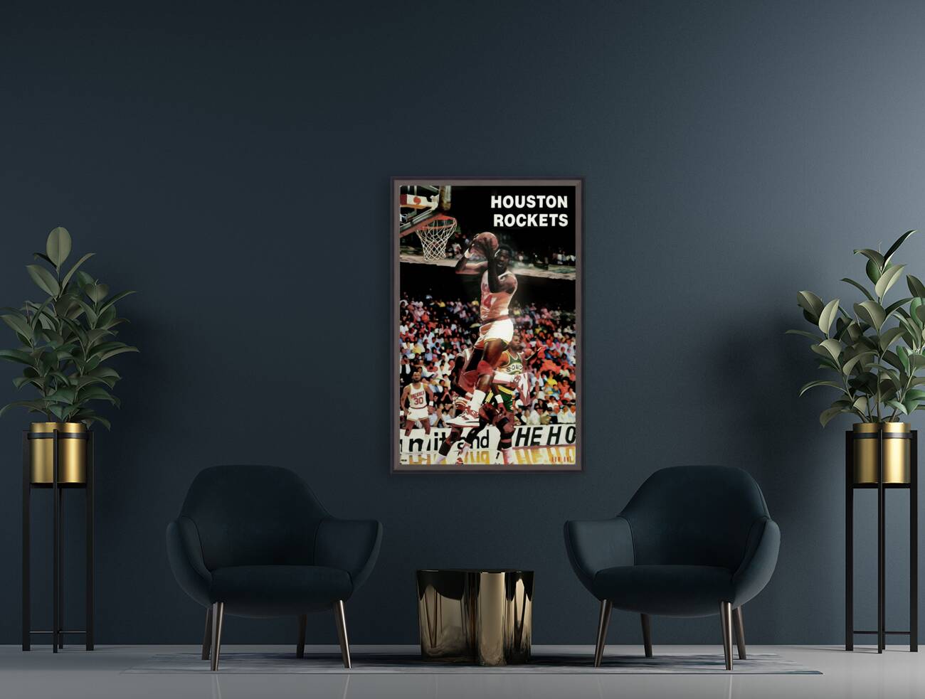 1987 Houston Rockets Hakeem Olajuwon Art | Retro Remix | Row One | Over 16,000 Historic Sports Prints | Remixed for the aesthetics of a painting, this...[+]