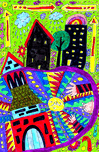 A hand drawn doodle inspired design created using coloured ink pens and paper. Features bright, vivid colors which dominate a whimsical scene featurin...[+]