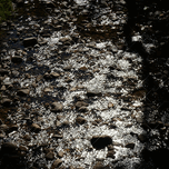 A coloured photograph featuring sparkling sunlight reflecting off the surface of a shallow, rocky stream. The interplay of light and water creates a s...[+]