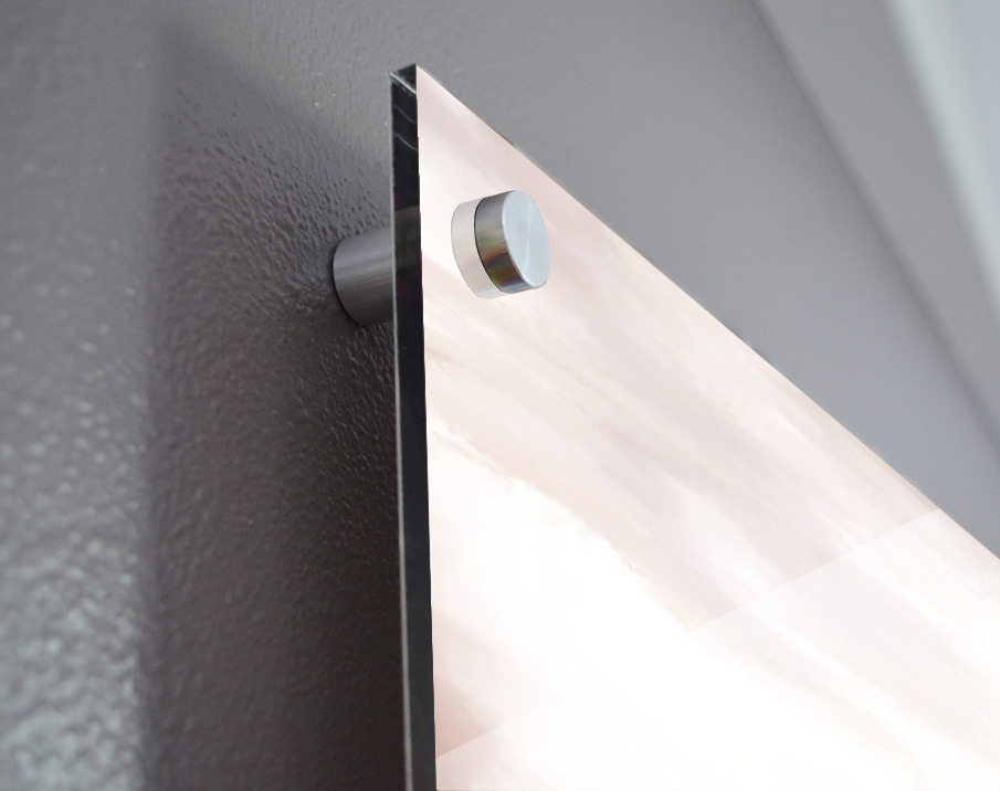 Printed to the edge - Ready to hang - provided with 4 premium polished aluminum stand off ( wall screws and mounting hardware provided )