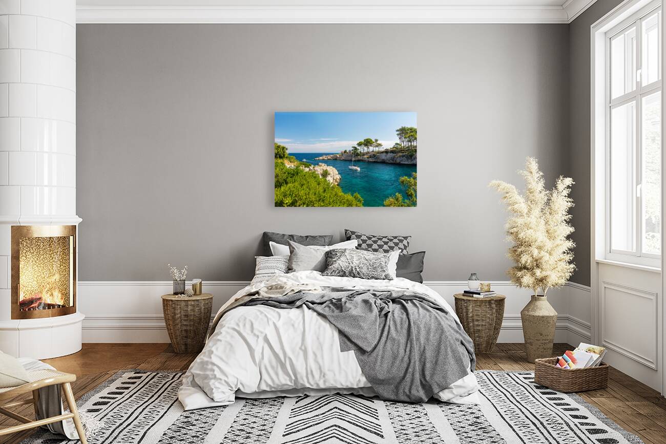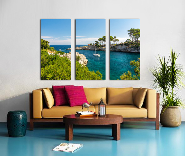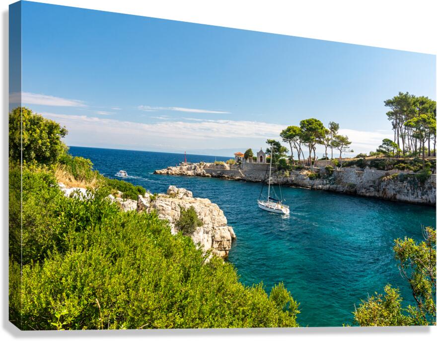 SAILING YACHT LEAVING THE BEAUTIFUL HARBOUR OF VELI LOSINJ CROATIA CALADOART  Canvas Print