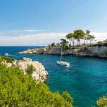 SAILING YACHT LEAVING THE BEAUTIFUL HARBOUR OF VELI LOSINJ CROATIA