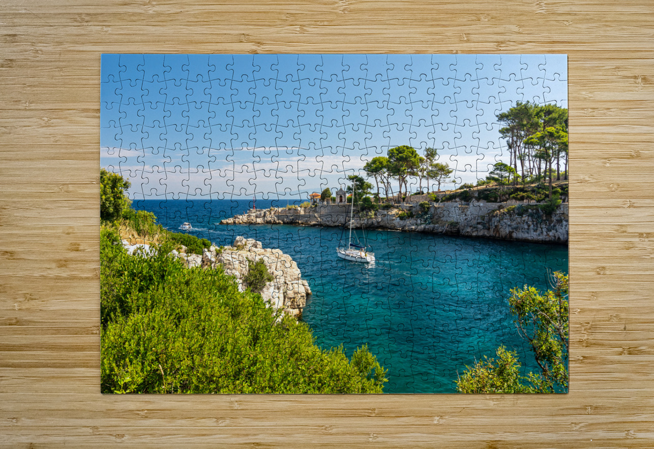 Sailing yacht leaving the beautiful harbour of Veli Losinj Croatia caladoart Puzzle printing