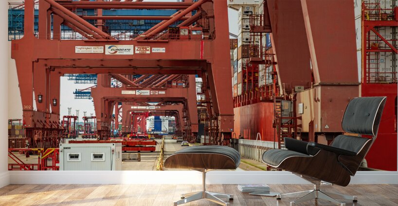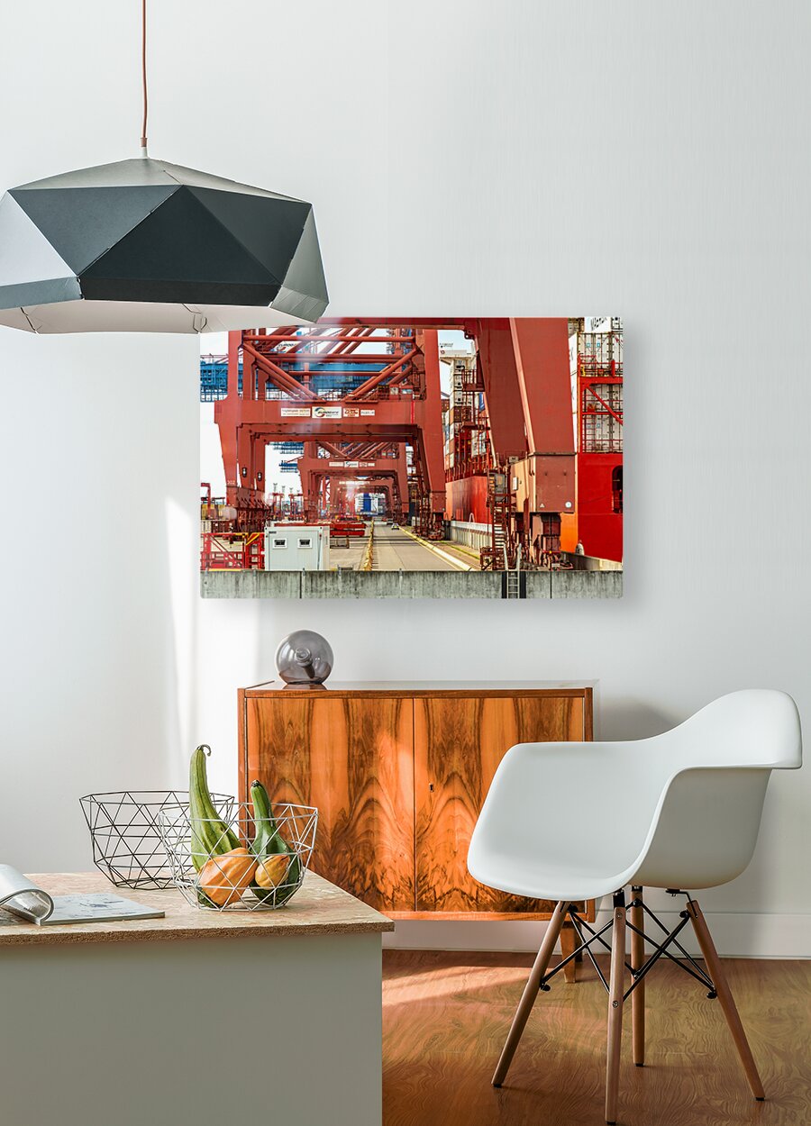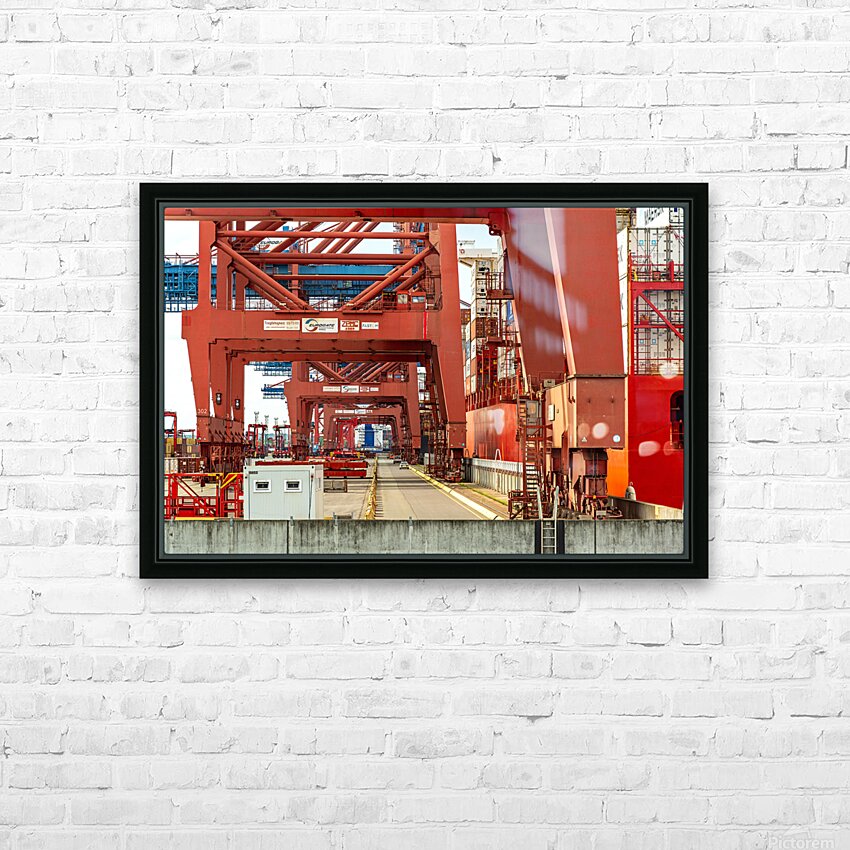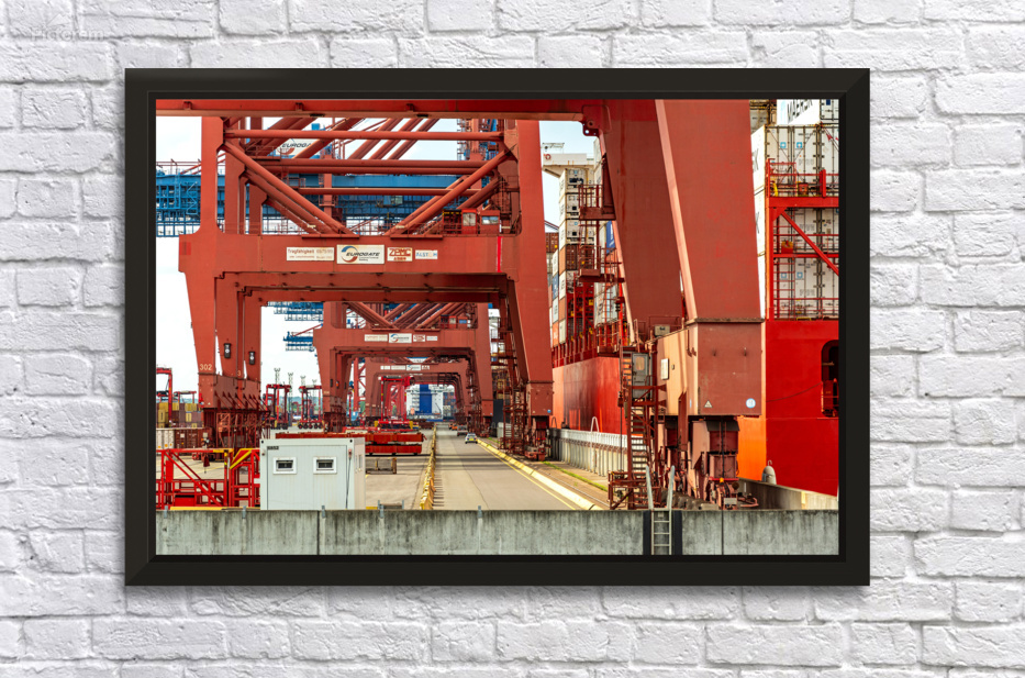 Get this artwork "Closeup view of gantry cranes at the Eurogate container terminal in Hamburg Germany" in a framed print.