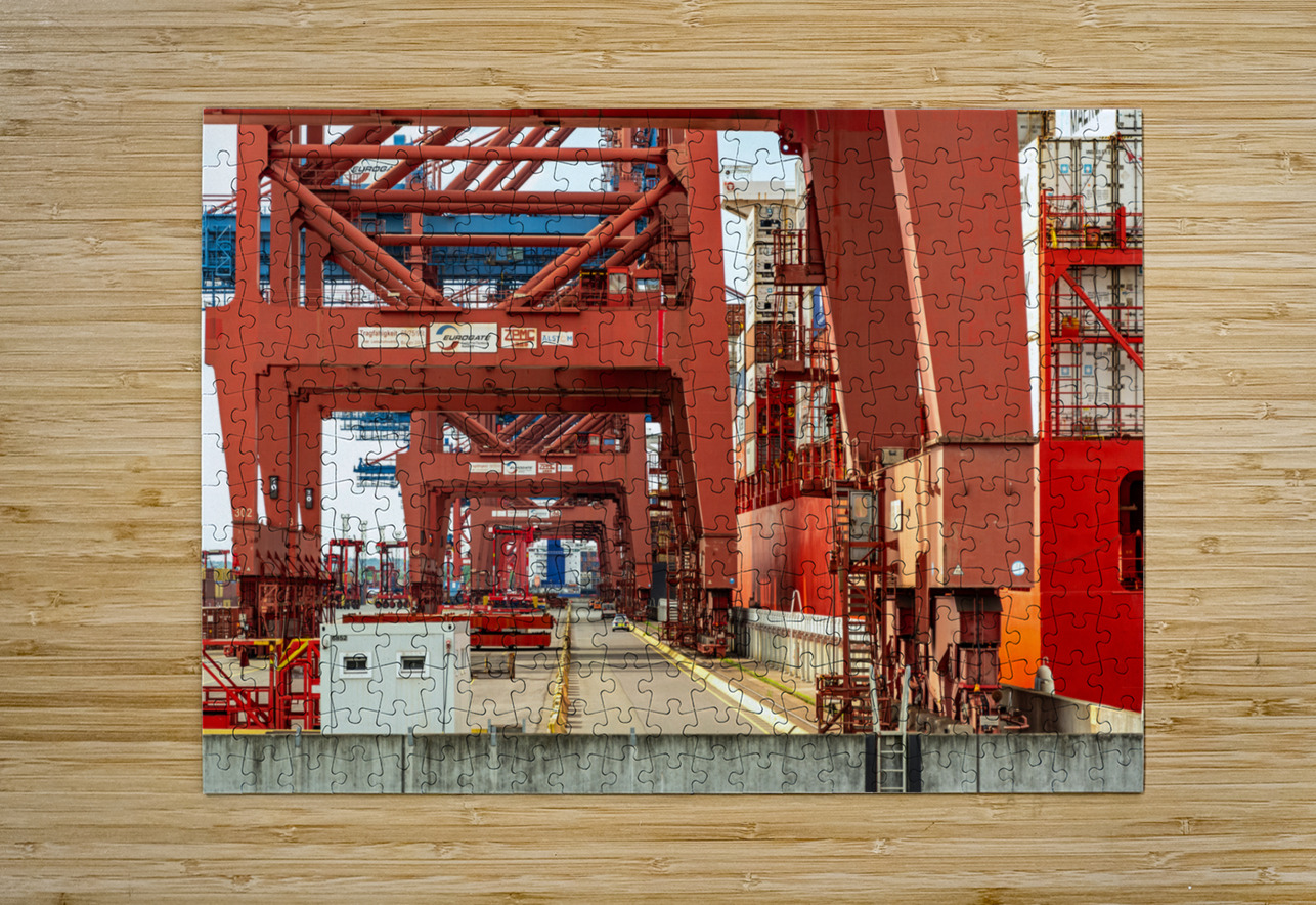 Closeup view of gantry cranes at the Eurogate container terminal in Hamburg Germany caladoart Puzzle printing