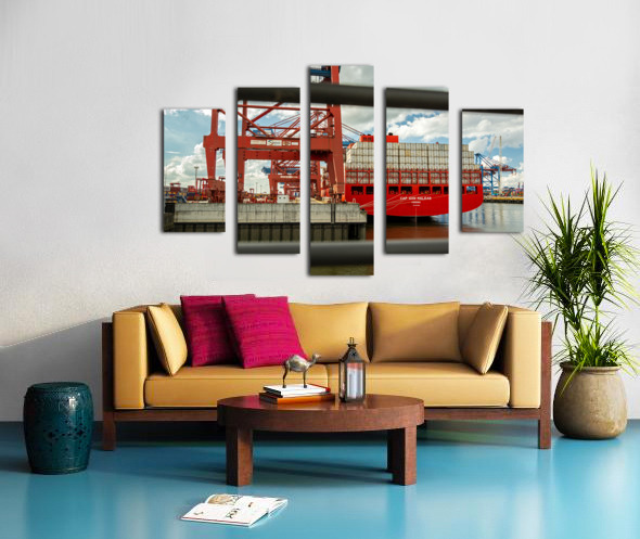 SHIP UNLOADING AT A CONTAINER TERMINAL IN THE PORT AREA OF HAMBURG GERMANY CALADOART  Canvas Print