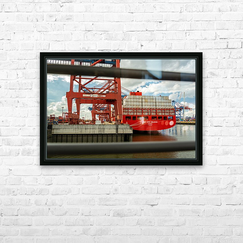 Get this artwork "Ship unloading at a container terminal in the port area of Hamburg Germany" in a framed print.