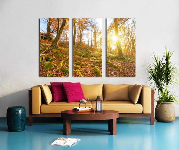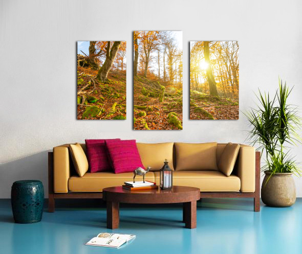 Get this artwork "Sun rays in the autumnal forest" in a framed print.