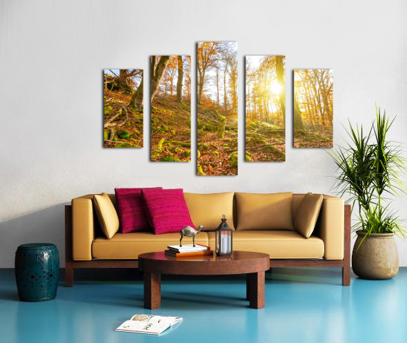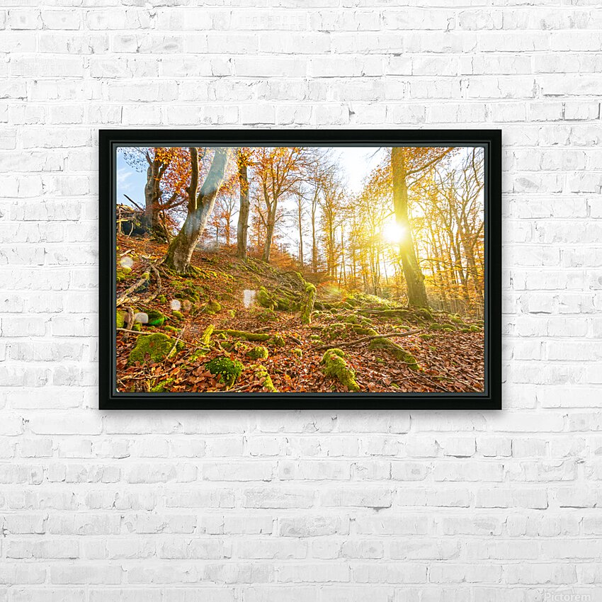 Sun rays in the autumnal forest Frame print
