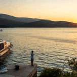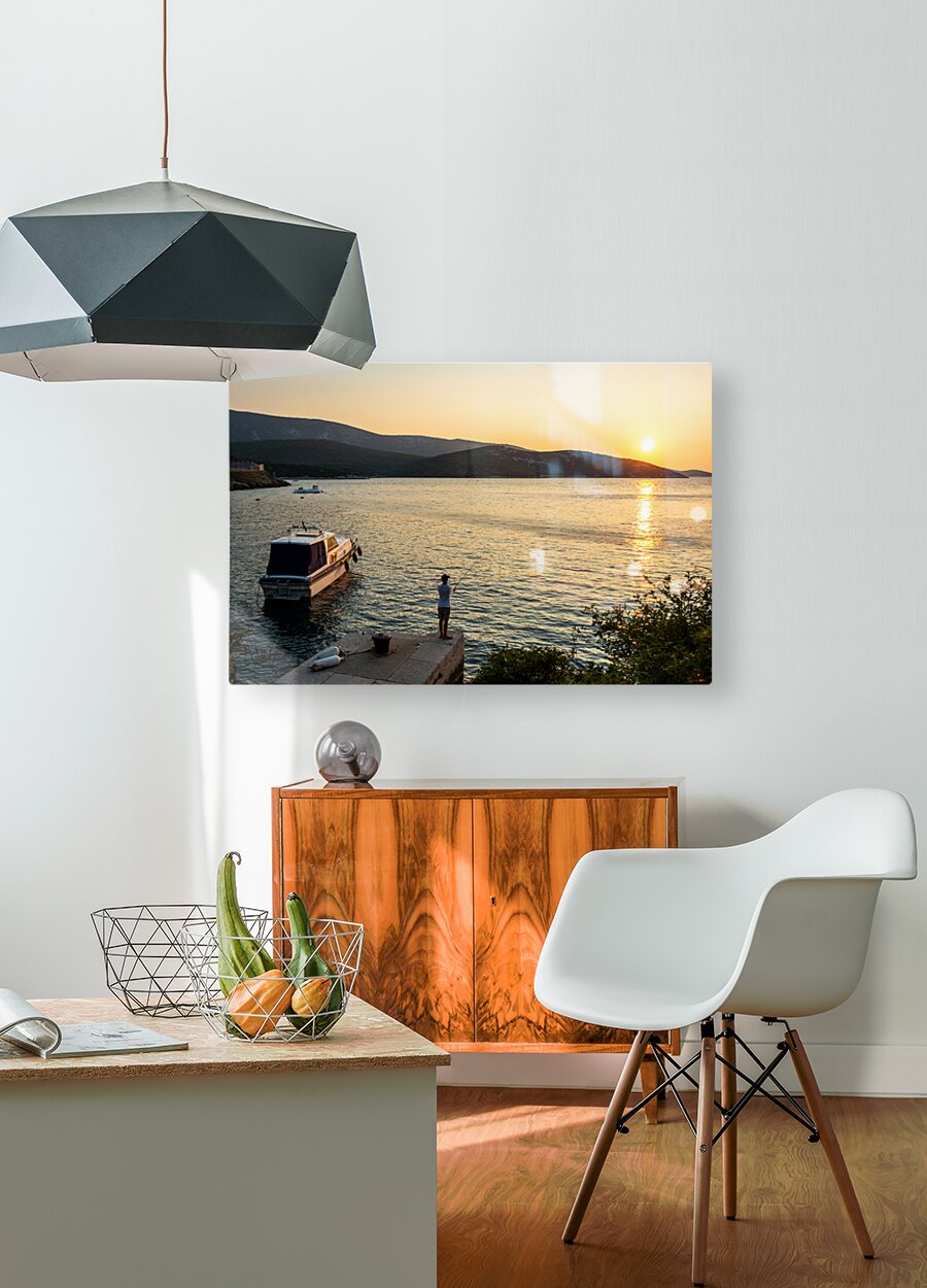 Get this artwork "Lonely fisherman in the beautiful bay of Osor on the island of Cres-Losinj in the Adriatic Sea Croatia" in a framed print.