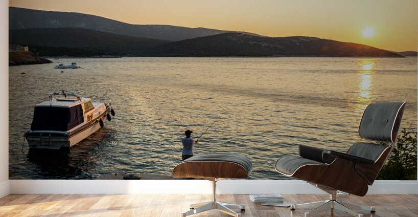 ABOUT THIS ARTWORK: LONELY FISHERMAN IN THE BEAUTIFUL BAY OF OSOR ON THE ISLAND OF CRES-LOSINJ IN THE ADRIATIC SEA CROATIA