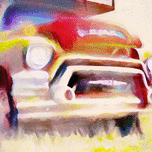 A rusty old GMC 370 moving van sits silently, awaiting the call to move once again in this fanciful abstracted digital art by Jon Woodhams.