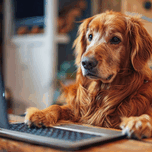 This heartwarming image captures a golden retriever intently focused on a laptop, exuding a sense of determination and intelligence. The dog, with i...[+]