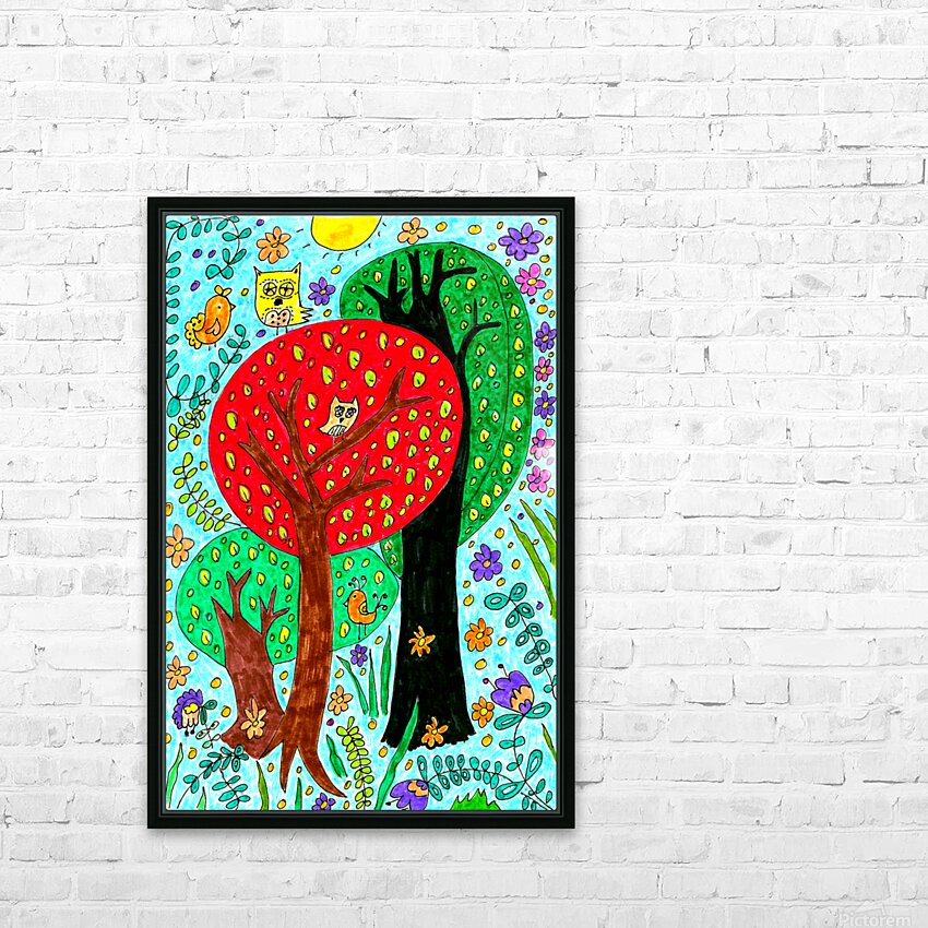 Abstract Doodle Art Trees and Owls  Wall Decor Frame