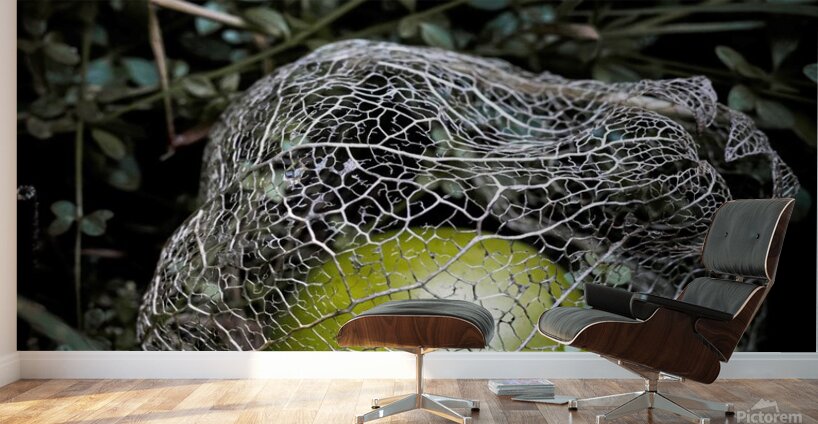 Natures hidden beauty. A fallen tomatillo lays in the grass. The shell now a beautiful skeletal frame showcasing the beautiful fruit inside.
