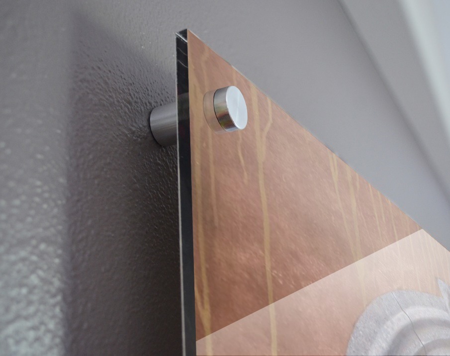 Printed to the edge - Ready to hang - provided with 4 premium polished aluminum stand off ( wall screws and mounting hardware provided )