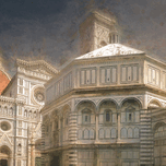 Florence (Firenze) is the main city of northern Italy region of Tuscany. Piazza del Duomo Baptistery, pictured here is in the heart of the old historic center. I've used my original photograph of The Cathedral of Saint Mary of the Flowers (Piazza del Duomo)and Baptistery of Saint John, given it a painterly chalk editing.