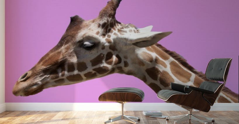 Eclectic and whimsical giraffe on a pink background. Great for a girls room or play room or as an accent if you are working with animal prints. Great as a mural to add colors to a den, playroom or living room.