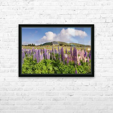 Get this artwork "Lupins and Church of the Good Shepherd Tekapo New Zealand" in a framed print.