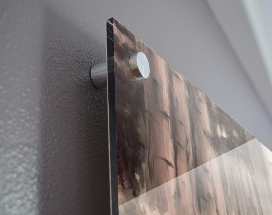Printed to the edge - Ready to hang - provided with 4 premium polished aluminum stand off ( wall screws and mounting hardware provided )