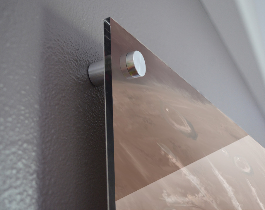 Printed to the edge - Ready to hang - provided with 4 premium polished aluminum stand off ( wall screws and mounting hardware provided )