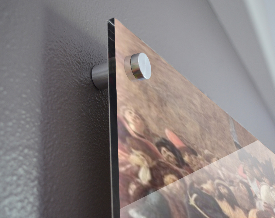 Printed to the edge - Ready to hang - provided with 4 premium polished aluminum stand off ( wall screws and mounting hardware provided )
