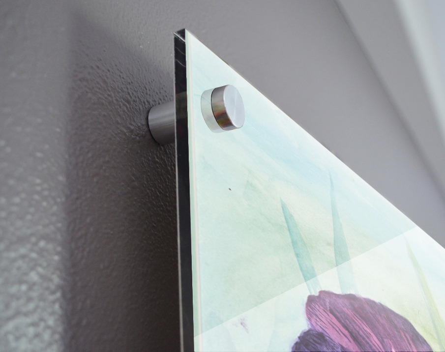 Printed to the edge - Ready to hang - provided with 4 premium polished aluminum stand off ( wall screws and mounting hardware provided )