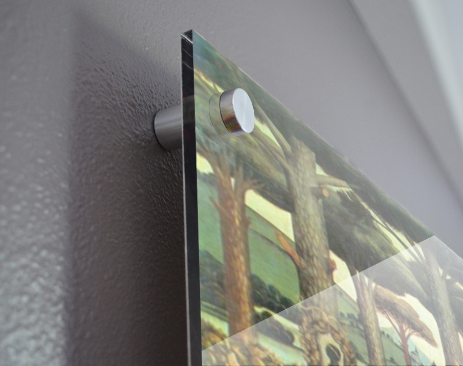 Printed to the edge - Ready to hang - provided with 4 premium polished aluminum stand off ( wall screws and mounting hardware provided )
