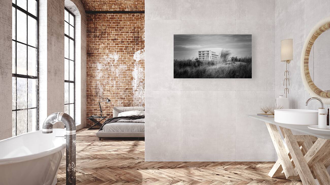 Get this artwork "Lotus Inn Over the Grassy Dunes in Wildwood Crest" in a framed print.