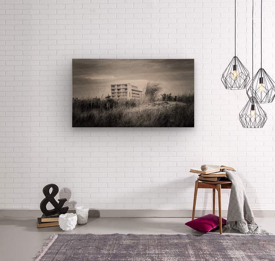 Lotus Inn Over the Grassy Dunes in Wildwood Crest Wood print