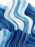 Wavy blue and white lines create a fluid abstract pattern reminiscent of ocean waves or flowing fabric. The design is dynamic with variations in shades adding depth and movement. Inspired by Hokusai s Great Wave at Kanagawa.
